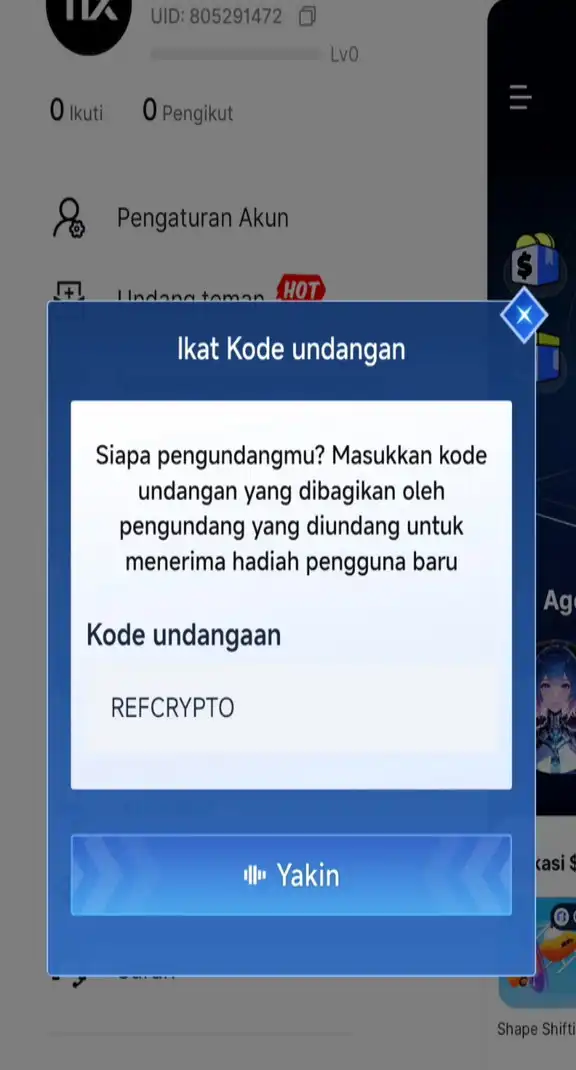 4. Klaim Hadiah Pengguna Baru dengan Kode Undangan